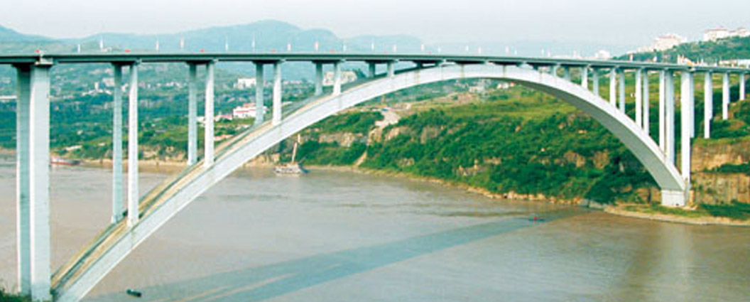 重慶萬縣長江大橋 全長856.12米,主跨420米,勁性骨架鋼管砼上承式拱橋,主跨居同期累橋梁世界第一,1997年7月建成通車。先后獲四川省天府杯金獎、國家科技進步一等獎、國家優質工程獎、詹天佑...