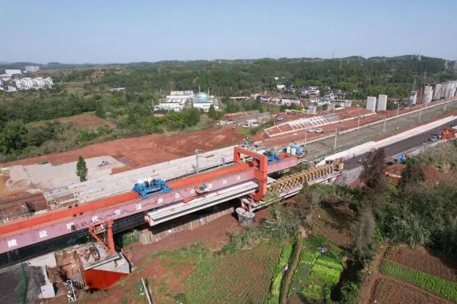 11月16日中午12:08分,隨著架梁機將最后一榀重約370噸、長32米的單線預制箱梁、穩穩落在下行聯絡線