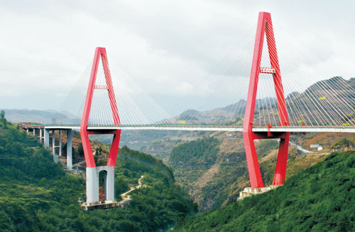 全長840米,主跨360米,主塔高188.01雙塔雙索面PC砼斜拉橋,2009年12月建成通車。