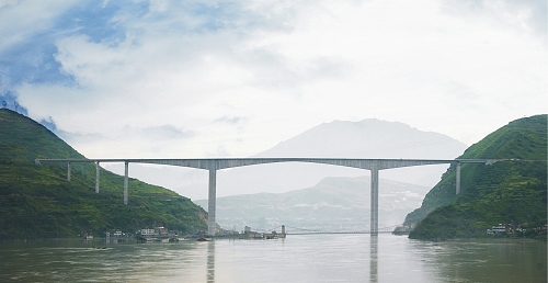 全長1765.8米,主跨255米,主墩高100米,主墩樁基深80余米,預應力砼連續鋼構橋,2009年6月建成通車。其主跨居同期同類橋梁四川第一、全國第四。
