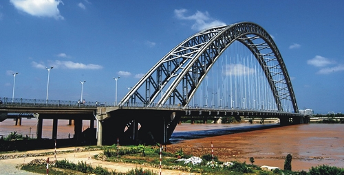 廣西南寧永和大橋 全長1402.15米,主跨338米,單跨下承式鋼管砼變高度桁式有推力無鉸拱橋,2004年10月建成通車。共46個吊裝節(jié)段,單節(jié)段最大吊重121.8噸,公司承擔吊裝工程。