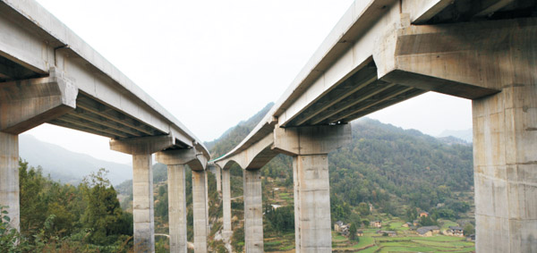 橋垮140米,墩高75.25米,預(yù)應(yīng)力混凝土連續(xù)剛構(gòu)橋,2012年4月建成通車。